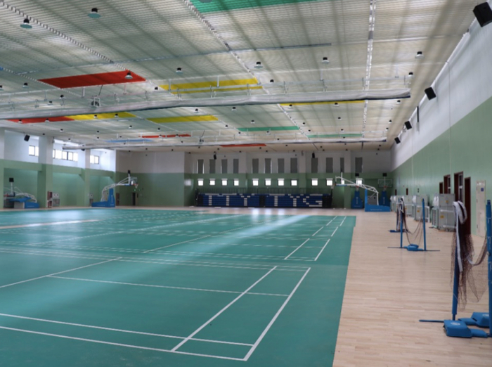 场馆外围,调整了原有的室外绿化、硬化、停车场及车库出入口,增设了停车位;馆内,拆除了原有的隔断、楼梯及楼梯间,重新布置室内体育功能区和设备用房,整个布局更显清爽宽敞,还特意加强了露天平台保护措施,保障居民安全。
