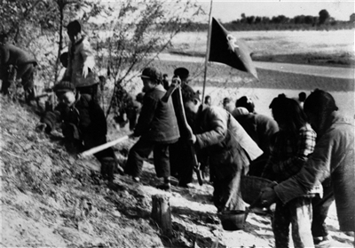 1958年红领巾水库建设场景。