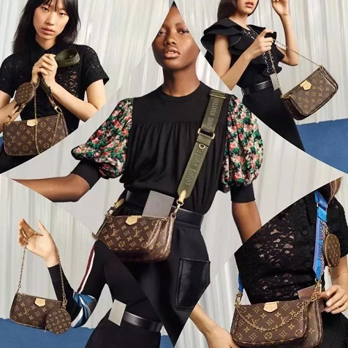 这只款式独特的Multi Pochette Accessoires由五部分组成:大号麻将包x1,小号麻将包x1,圆饼零钱包x1,宽肩带x1,最后还有一条短链条肩带。好像拥有了一个加强排,三个极具实用性的包袋组合起来,因此得名“三合一”。