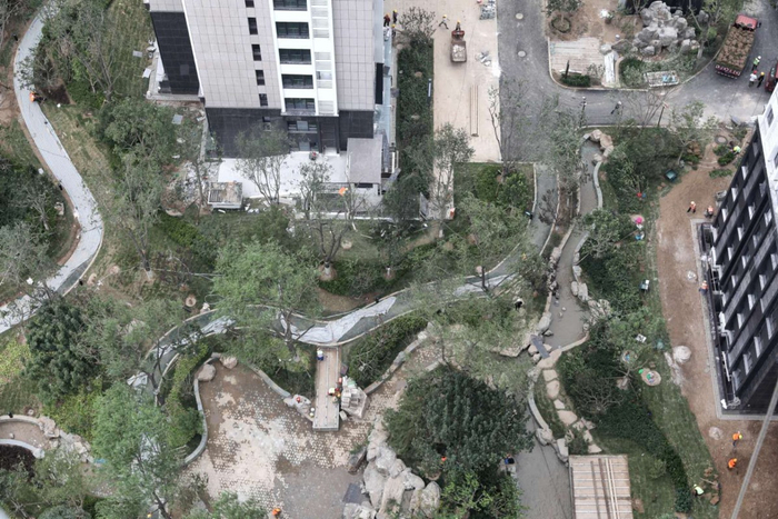 北京日报客户端记者在现场看到,全新的住宅小区采用新古典设计风格,深、浅两色的外立面石材结合大屋檐屋顶,透着股中式韵味。前后错落排布的7栋住宅楼中心,则是一个有假山、有水系的小花园,静静的流水声仿佛隔绝了外界的一切喧嚣。“老魏公村小区的房型就比较多,为了最大程度地尊重居民意愿,在工程动工之处,就确定建设26种不同户型,从68平方米的两居室到130平方米的四居室,且户户都是南北通透、明厨明卫。”中建八局三公司魏公村棚户区改造项目副经理于超介绍。