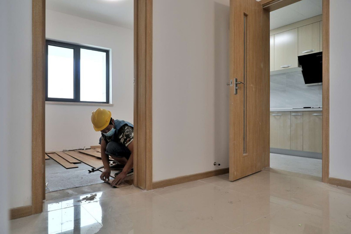 中午,近千名建设工人正在现场忙碌着,室内保洁、草坪铺装、指示牌安装……为最后的交房做着准备。3年原址回迁的承诺即将实现。
