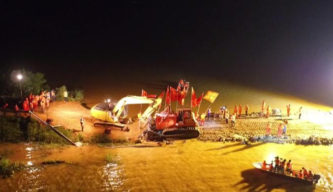 江西鄱阳问桂道圩堤合龙时拍下的照片