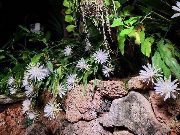 由于昙花夜间开花,能够亲眼一睹其芳容的人并不多,因此植物园今年运用直播、短视频等方式,让更多人一同欣赏。此外,面向亲子家庭的夜游活动也让大小朋友们有机会亲眼一见,目前馆内仍有新出的花芽含苞待放。