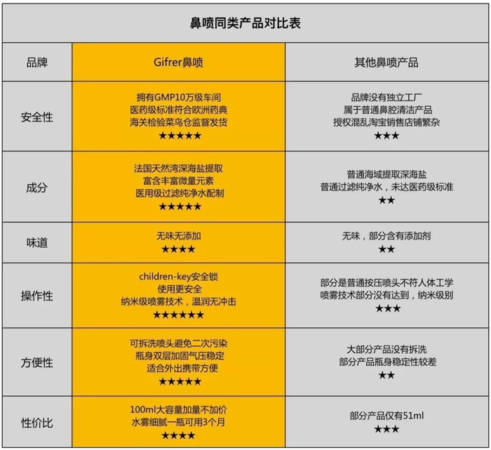 还整理了一下同行业的其他鼻喷类产品信息,原来Gifrer的好口碑不是没有原因啊。