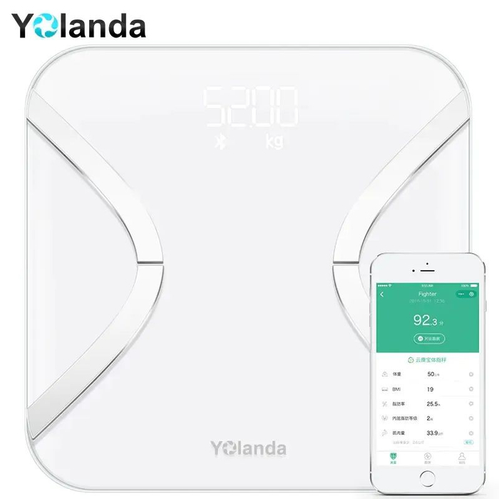 体脂秤,与常规的体重秤不同,不仅可以测出体重,还采用生物电阻抗分析法测量,推算出身体的多项数据,六大组成部分和BMI指数等指标,并上传到手机APP上。