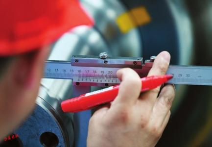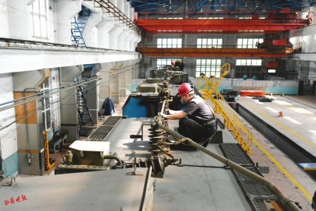 6.工作人员正在精准测量轮对轴径。
