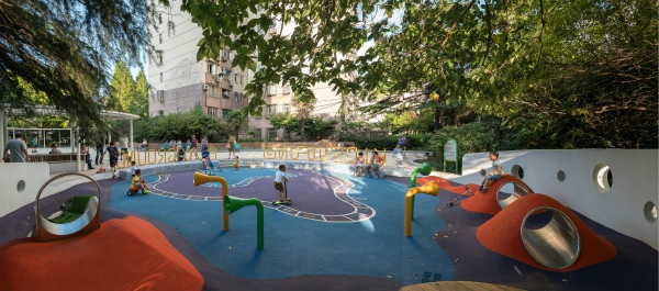 管弄一村150平方米的儿童专业活动区与相邻的890平方米的广场、220平方米的云廊构成了孩子们自由玩耍的乐园。