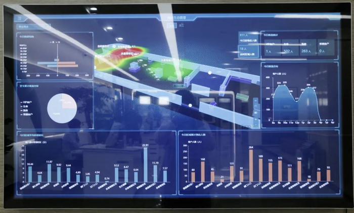 通过对网点每个区域客户分布、客户流量动线轨迹、区域繁忙程度、年龄标签等维度的数据统计,智能分析客户需求及时优化服务方案,当客户进入银行,智慧驾驶舱自动提示机器人引导员迎接,与客户进行交流,主动向客户营销农行正在销售的贵金属、卡类、理财类产品; 还可以根据客户咨询的问题,引导客户到指定功能区域办理业务。
