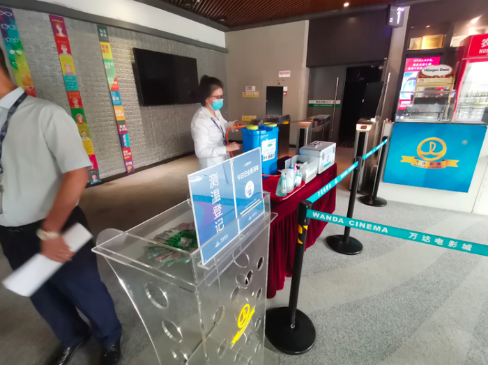新增防疫检票口、设置应急观察室、配备智能口罩回收箱……虽然还未营业,但是万达影城通州店的相关防疫措施已经执行到位。