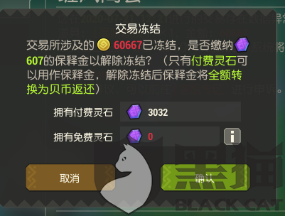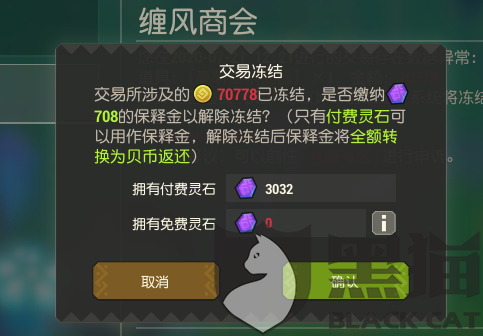黑猫投诉:游戏内正常交易被冻结并索要超高额保释金