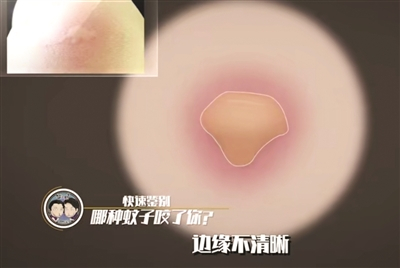 “猫哭兄弟”告诉记者,个人被蚊子叮咬之后的反应,确实与个人体质是有关系的,但在过敏反应没那么大的情况下,蚊子类型不一样,“口水”中所含的物质不一样,造成的“蚊子包”的样子确实会有不同,这就是视频中所讲的快速鉴别的根据。