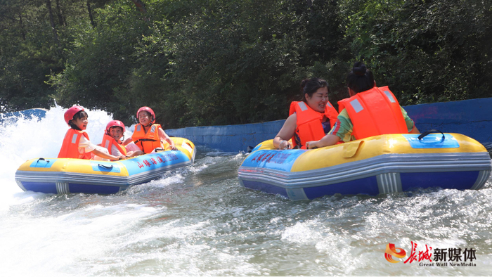 7月22日,游客在丰润区山缘生态庄园景区体验漂流。朱大勇 摄
