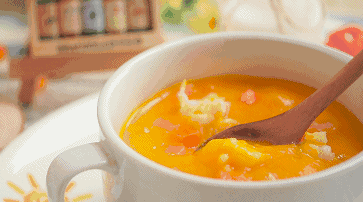 把蒸熟的南瓜和牛奶一起放到榨汁机里,就能得到一杯南瓜牛奶!如果只放少量牛奶,就能得到一份韩餐店里的同款香甜南瓜羹。