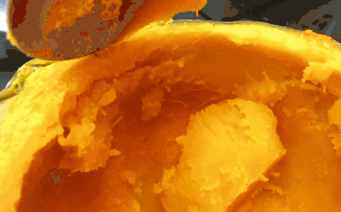 不像普通南瓜那样的糊成一滩,贝贝板栗南瓜质地细腻粉糯,口感沙沙的,还很香甜。