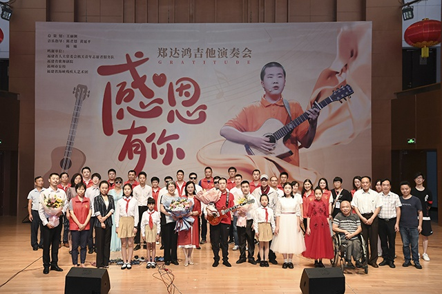 7月19日下午,一场“感恩有你”主题吉他演奏会,在福建大剧院音乐厅举办,并采用云直播的形式与广大网友分享。演奏会的主角是来自福州市盲校的阳光少年——郑达鸿。他现场演奏了10首曲子,包括独奏和二重奏。听众们沉浸在精彩的演出中,被他展现出的技巧和流淌在音乐间的如阳光般灿烂的情绪深深打动了。