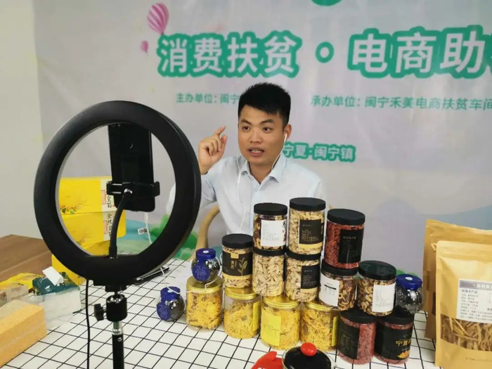 “欢迎大家进入直播间,关注李镇不迷路,李镇带你上高速,大家一起跟我助力扶贫助农公益……”在银川市永宁县闽宁镇禾美电商扶贫车间,一个三十岁出头的小伙子面对直播设备卖力地吆喝着。