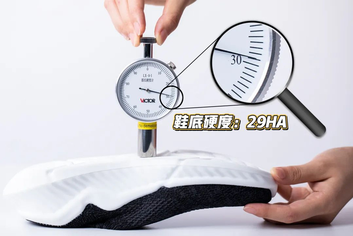 我们还特意测量了一下鞋底的硬度,只有29HA,平时运动出行穿起来都刚刚好~