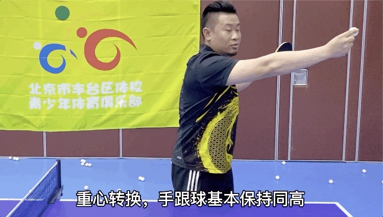 引拍:球拍向后上方引,转腰,重心右移。击球前手臂内旋使拍面前倾,整个手臂随着腰、髋的转动而尽量向身体右后方引拍,以增大球拍与来球的距离。