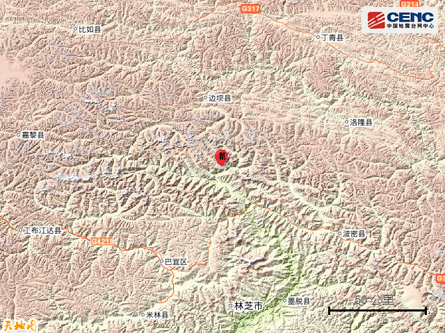 西藏林芝市波密县发生4.4级地震