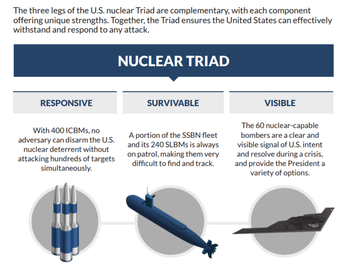 美国“三位一体”核战略通过陆基、海基、空基核力量得以实现