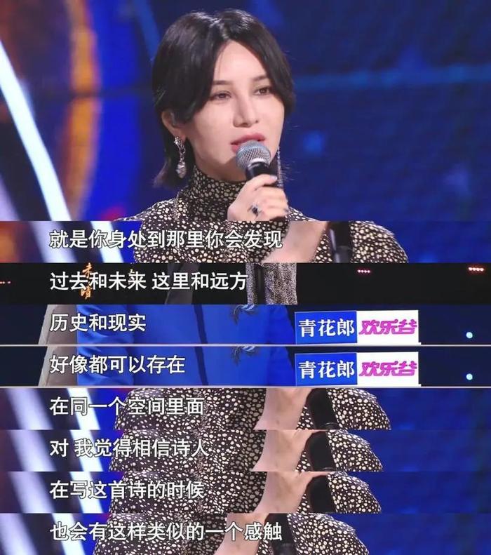 在《经典咏流传》舞台上,她用一首原创歌曲《苍黄》将古典与现代融合,以更宏观的视角勾勒千年敦煌的魅力,带领众人穿越历史云烟了解和走进敦煌。廖昌永在点评时感叹道,一边听《苍黄》,一边心儿已经飞到了敦煌。