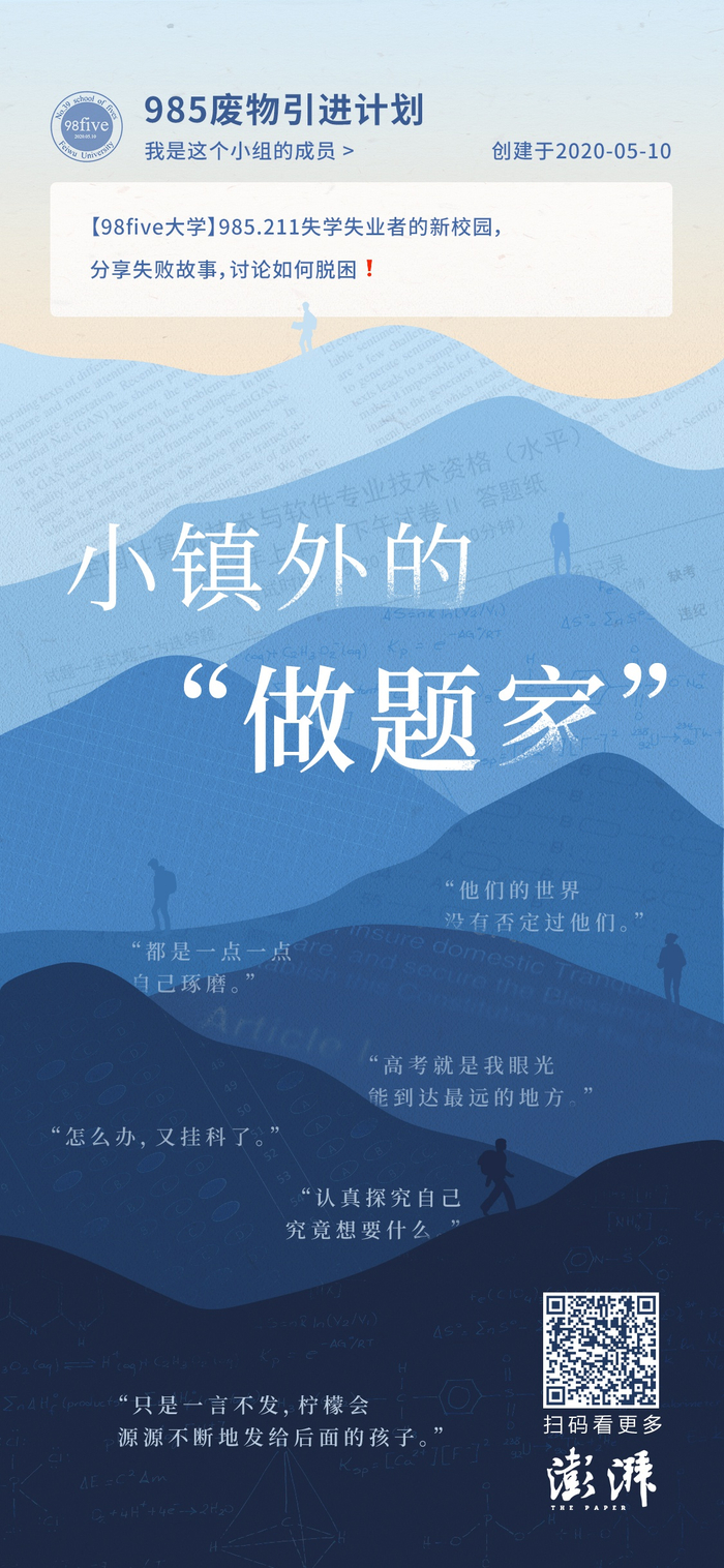 这些过去,余沛很少和他人倾吐,而“985废物引进计划”小组是一个安全的角落——小组成立于5月10日,经历了人数的急速攀升,从建立时的个位数到如今的8万人,像一个漂流于大众视野之外的小岛,收纳着许多和余沛相似的痛苦与困惑。