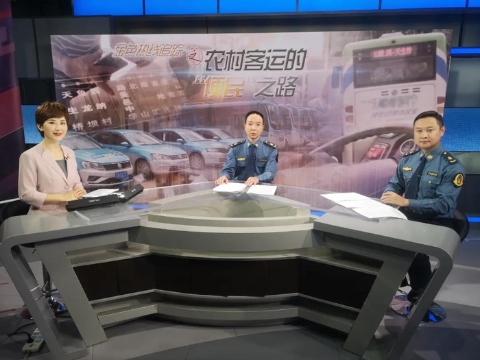7月24日,公共频(YNTV-6)播出的《金色热线追踪》主持人李莉,与嘉宾云南省道路运输管理局局长飞再明,和云南省道路运输管理局客运处副处长熊治星,一起讨论关于我省农村客运的发展。