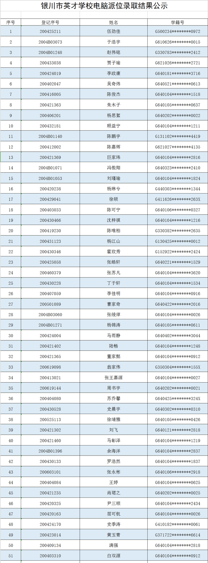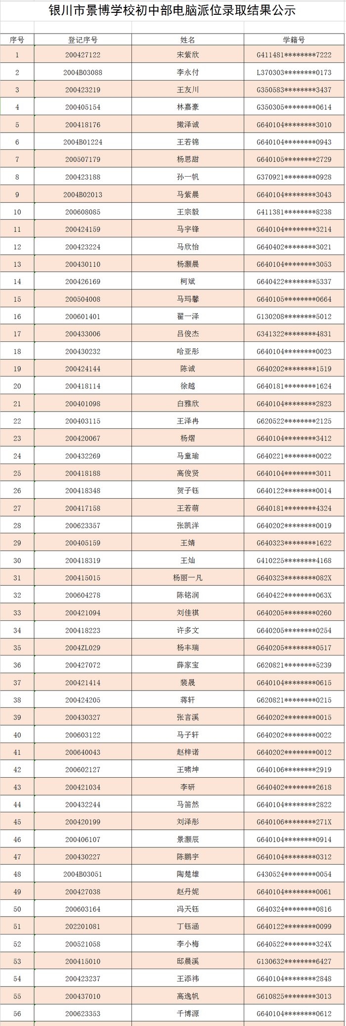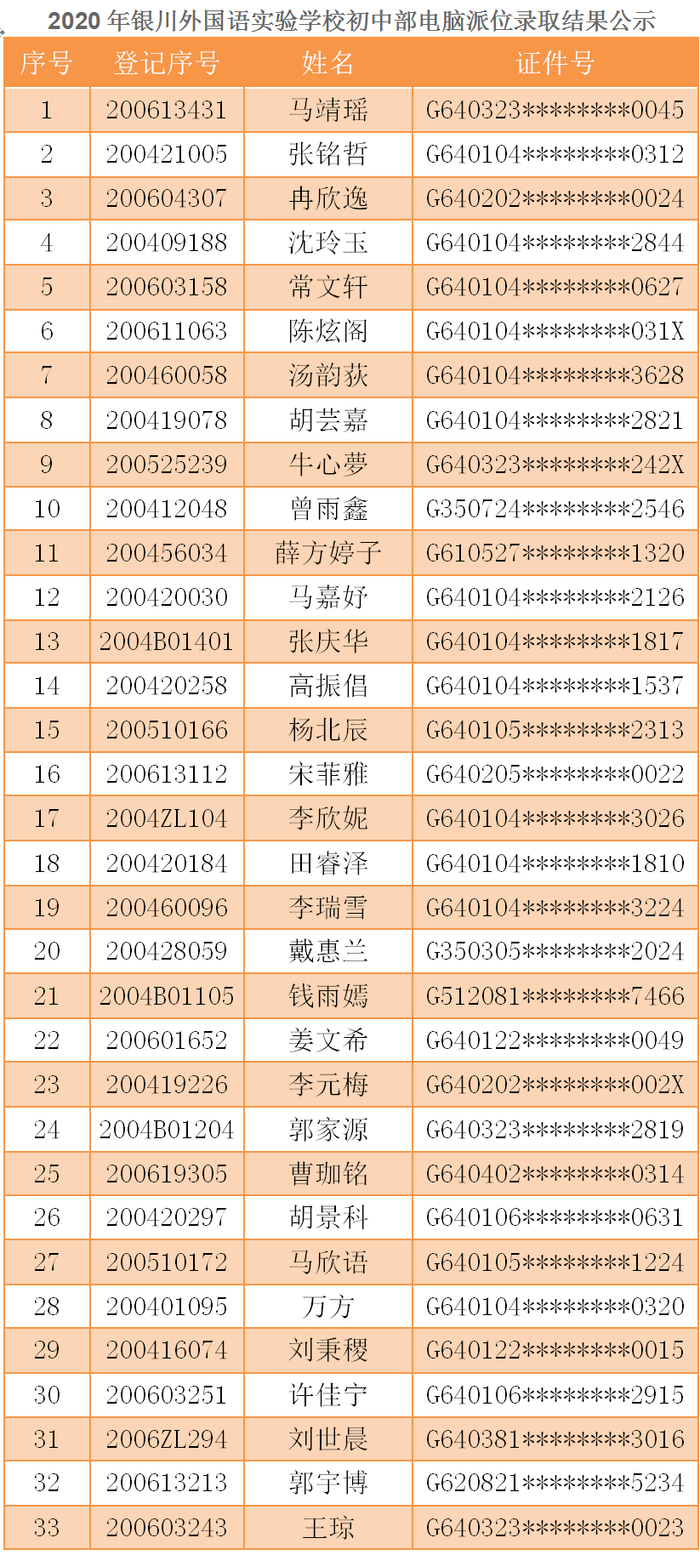 银川4所民办初中招生电脑派位结果公布!(附录取名单)