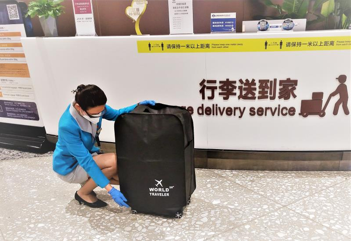 疫情防控期间,工作人员会对收取的行李进行清洁和消毒,如遇雨雪等特殊天气,还将为行李穿上行李雨衣。