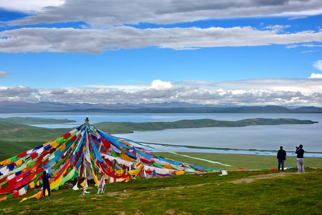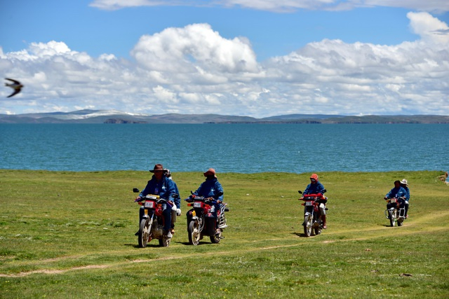 7月23日上午,玛多县扎陵湖乡,擦泽村牧民索索带着牧民们沿湖巡查。这位32岁的藏族汉子被晒得黝黑,毡帽、墨镜和口罩遮住了大半张脸。