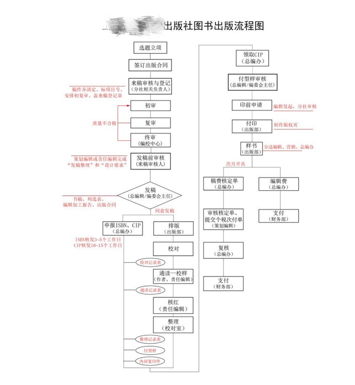 从来稿审核与登记、付印一共有11个步骤,要经过策划编辑、责任编辑、初审、复审、终审等环节。