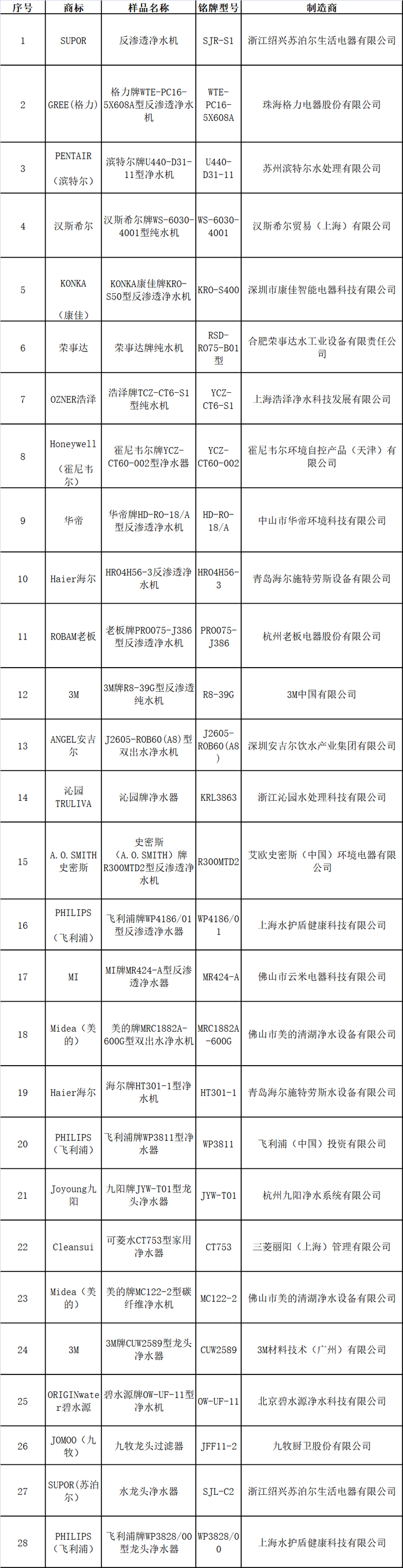 反渗透净水器整机卫生安全不符合国家标准要求结果