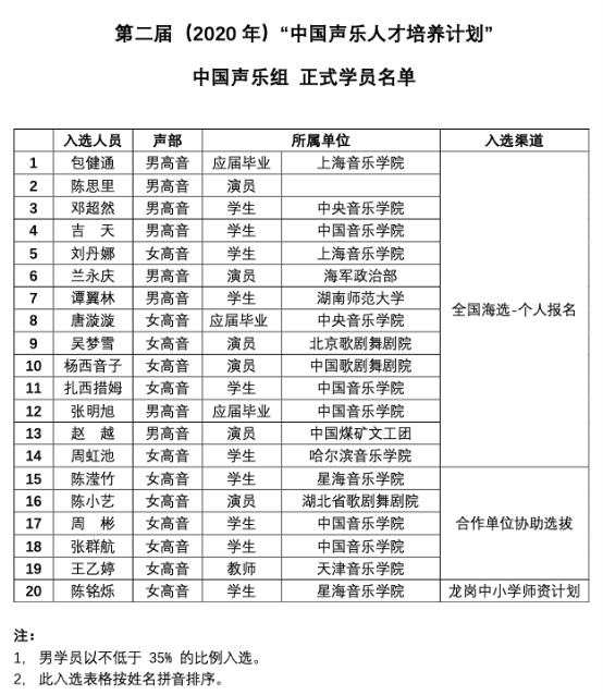 原标题:第二届“深圳声乐季·中国声乐人才培养计划”学员名单公布