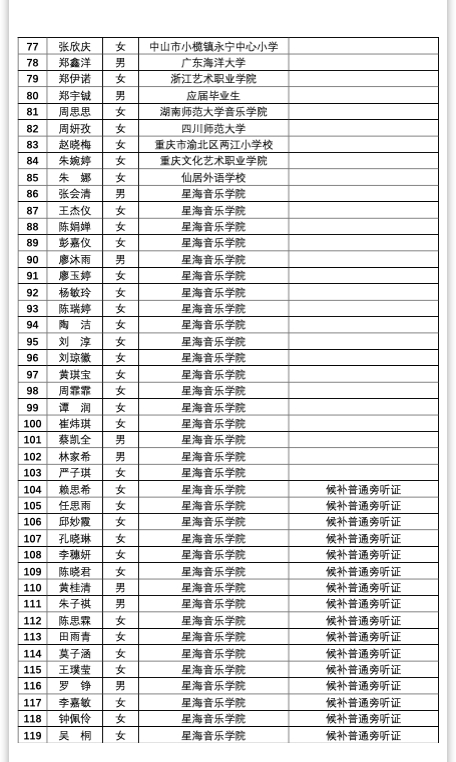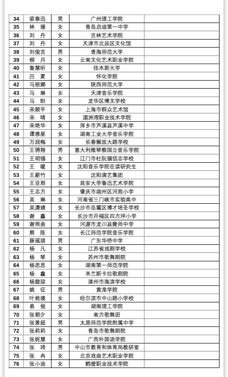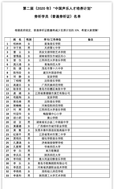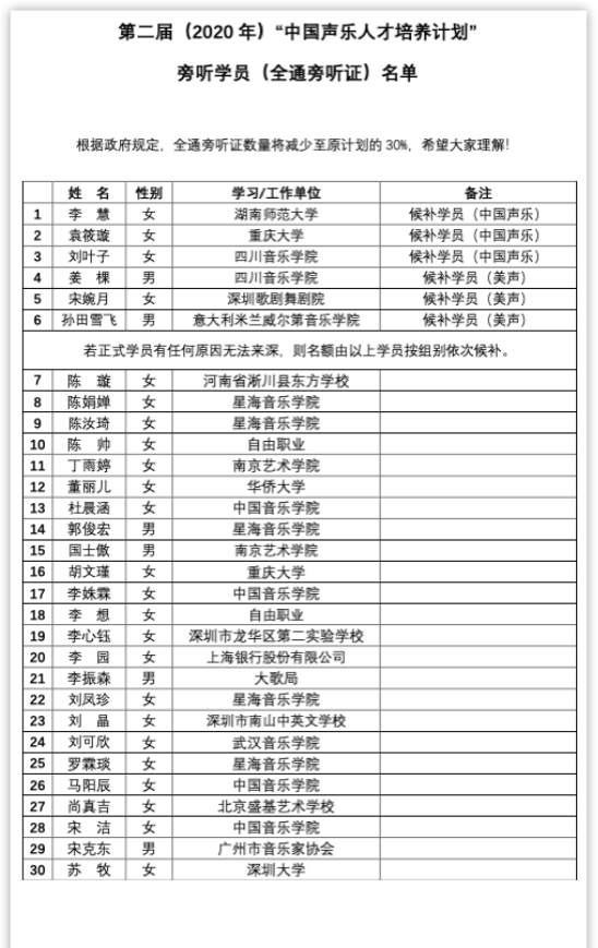 附:第二届“深圳声乐季·中国声乐人才培养计划”学员名单