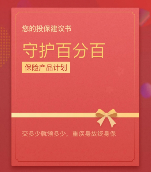 与此同时,守护百分百可选保障至60、70、80周岁,保障期满且平安无事,即可领取100%所交主险和附加重疾保费之和金额的满期生存保险金,相当于提前启动养老金储备计划。为了减轻部分客户保费支出的压力,守护百分百还可以按需求选择年交,半年交、季交、甚至月交,相当于分期买保险,真正做到小投入解决重疾费用大问题。