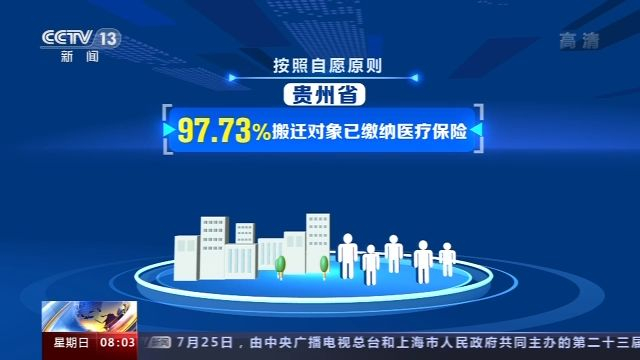 最新数据显示,按照自愿原则,贵州省97.73%搬迁对象已缴纳医疗保险,93.61%搬迁对象已缴纳养老保险。截至6月底,搬迁劳动力已就业86.17万人,占搬迁劳动力总数的89.19%。