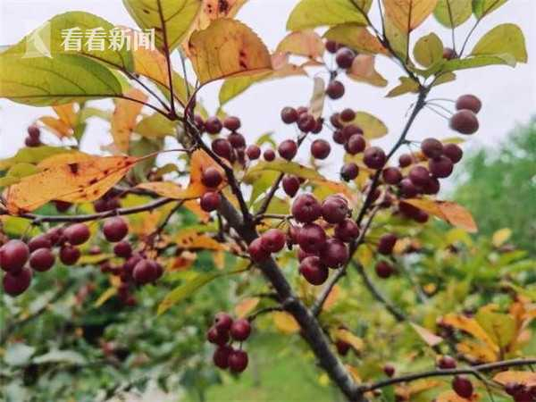 随着申城进入大暑,上海共青森林公园的海棠花果实也渐渐成熟起来,红红绿绿的海棠果圆润饱满,缀满枝头,形成公园的一道靓丽的景观。