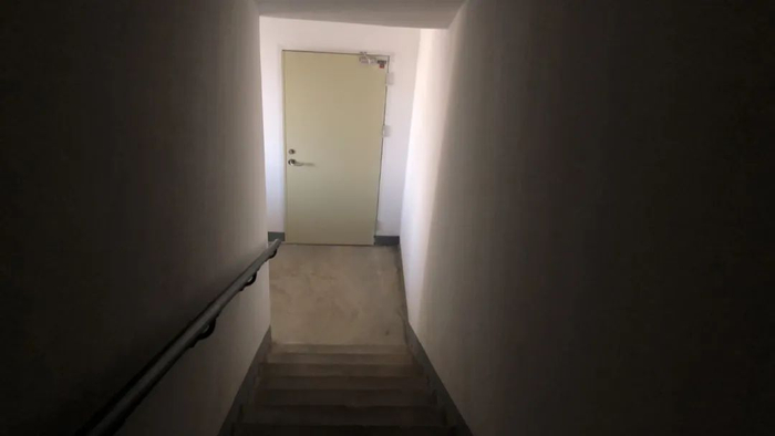 邓女士先从30楼出电梯,又从安全出口下楼,一路开门关门,来到邓女士抽到的回迁房门口,途中一共经过了6道防火门。邓女士还表示,如果路线不熟的话,还得穿过更多的门。