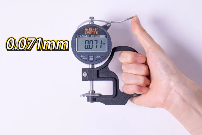 而这款剃须刀的刀网厚度仅约为0.07mm,也就是70微米!可以说,这是实打实的“微米级”操作了。