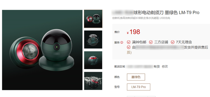 目前这款球形剃须刀,在某平台上售价198元。