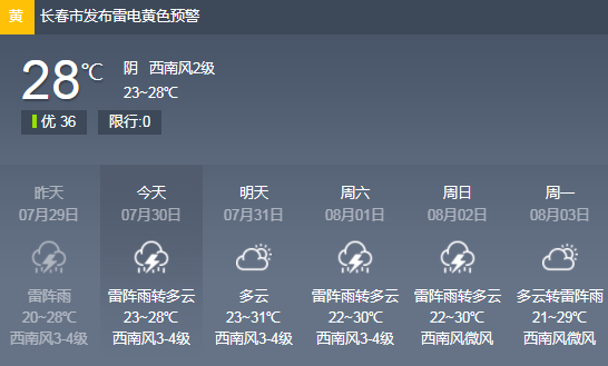 全省多云,松原东部、长春北部有阵雨或雷阵雨。全省大部分地区有3级左右偏南风。