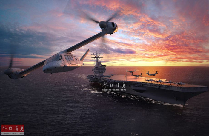 V-280从美海军核动力航母上起飞设想图,未来也不排除美军其他军种采购V-280的可能性。