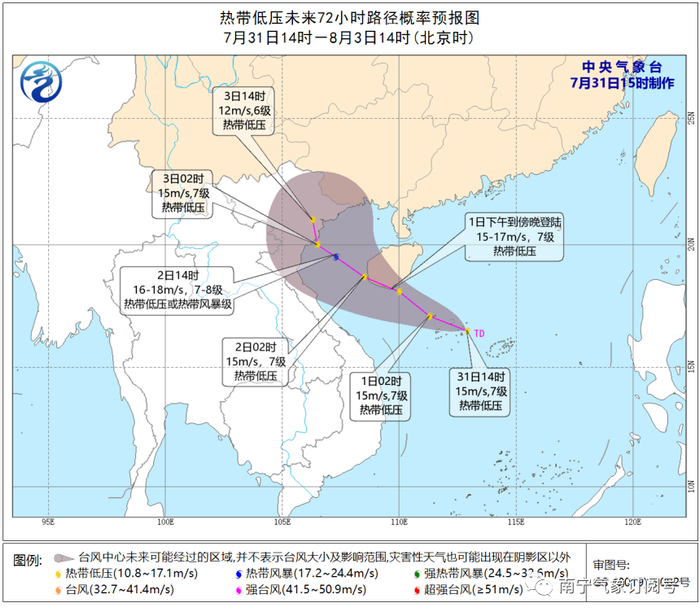 南宁市气象台07月31日17时提供: