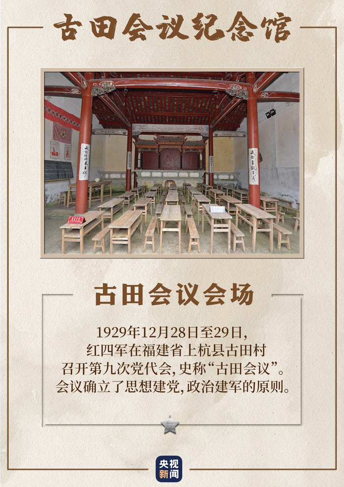 1929年12月28至29日,天寒地冻,福建省古田镇溪背村廖氏宗祠的大厅却布置得热烈而庄重。在这里,毛泽东、朱德等人领导召开了中国共产党红军第四军第九次代表大会,史称古田会议。