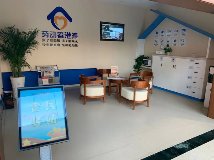 设立“老兵驿站”,为军人、退役军人群体提供包括饮水、休息、手机充电、点钞机、便民服务箱等各项资源服务;