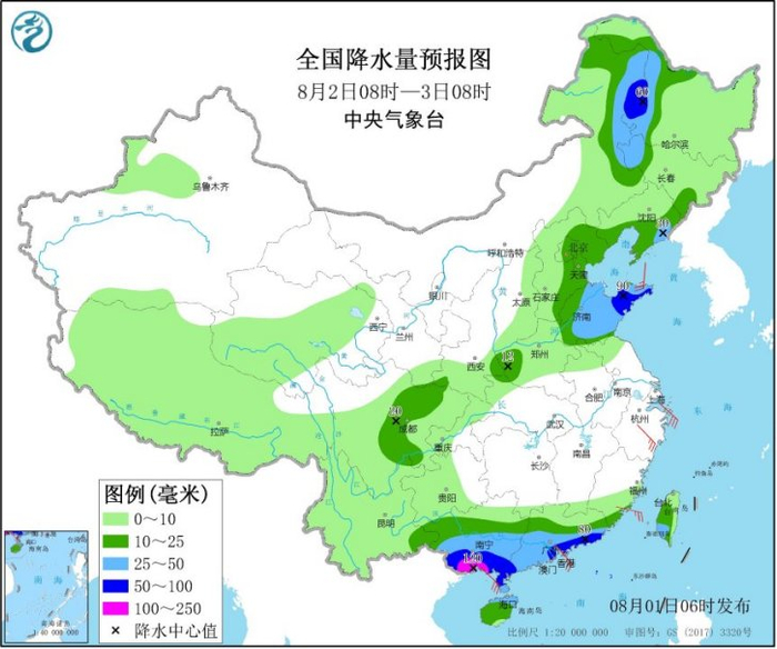 除了华南部分地区以外,昨日华北黄淮及四川云南等地部分地区同样出现强降雨天气,北京朝阳、怀柔、顺义及天津津南和东丽、河北沧州、山东临沂等局地大暴雨。预计未来三天,华北、东北、黄淮等地多阵雨或雷阵雨,降雨量分布不均,局地有大雨或暴雨,并伴有短时强降水、雷暴大风或冰雹等强对流天气;四川盆地、云南西部和南部有中到大雨,局地暴雨。上述地区的公众需防范短时强降雨、雷暴大风、冰雹等强对流天气对交通出行的不利影响。