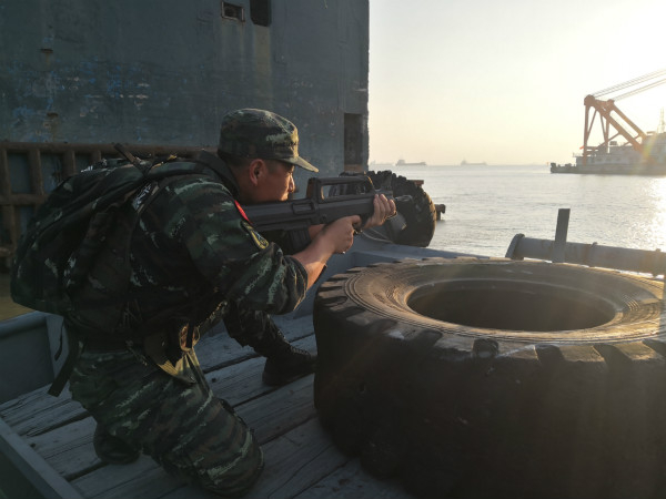 图说:每个训练课目展开前,汤军义都要亲自组织示范示教。