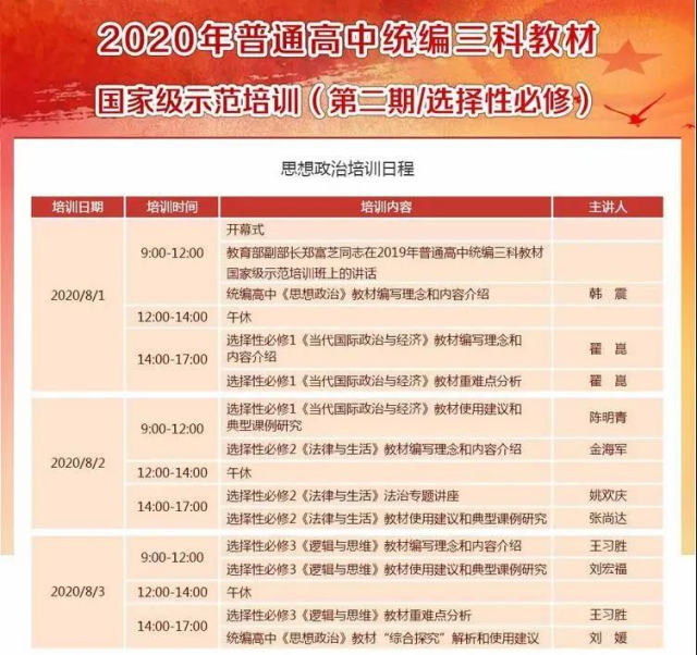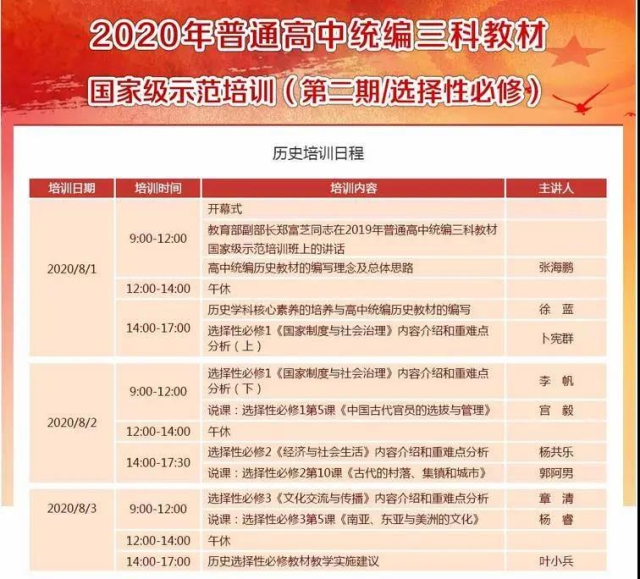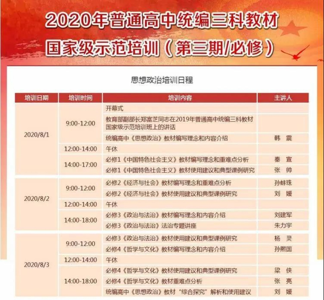 原标题:2020年普通高中统编三科教材国家级示范培训上线 来源:中国教育新闻网