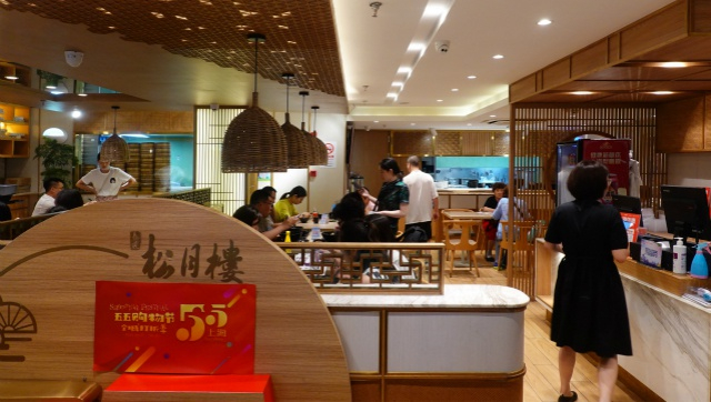 上海久光百货的松月楼就是第一家分店,第一财经记者在该分店看到,其店内主打包点、面食,也鼓励顾客打包,店内还打破了传统餐饮业的服务模式,把人工点单、人工送餐、人工回收餐盘改为自助点餐、自助取餐、自助回收餐盘,如此一来节省门店面积和人力成本。
