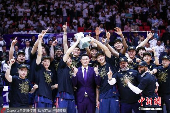 资料图:2018-2019赛季CBA总决赛第四场较量落下帷幕,广东宏远队103:98再度攻陷新疆红山体育馆。不仅以4:0横扫对手报了两年前的一箭之仇,还史无前例的第九度登顶,超越八一队领跑CBA。 图片来源:Osports全体育图片社